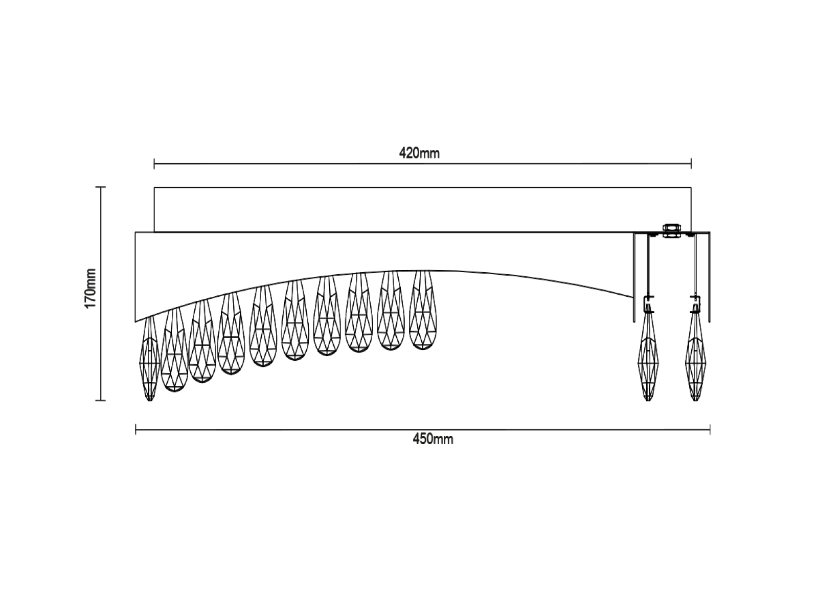 Die Leuchte besteht aus hochwertigem Edelstahl mit erstklassigem Finish, das durch präzise geschliffene Kristalle ergänzt wird, die die Reflexion und Brechung des Lichts betonen. Die verwendete Verarbeitungstechnologie gewährleistet die langfristige Stabilität des Materials und die Erhaltung des ästhetischen Erscheinungsbildes.