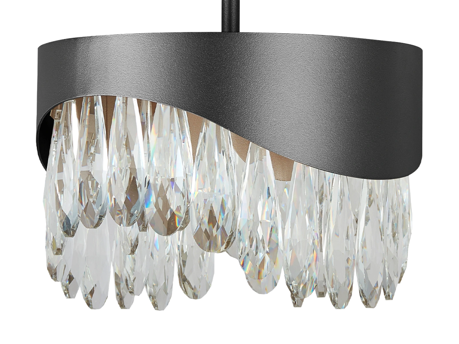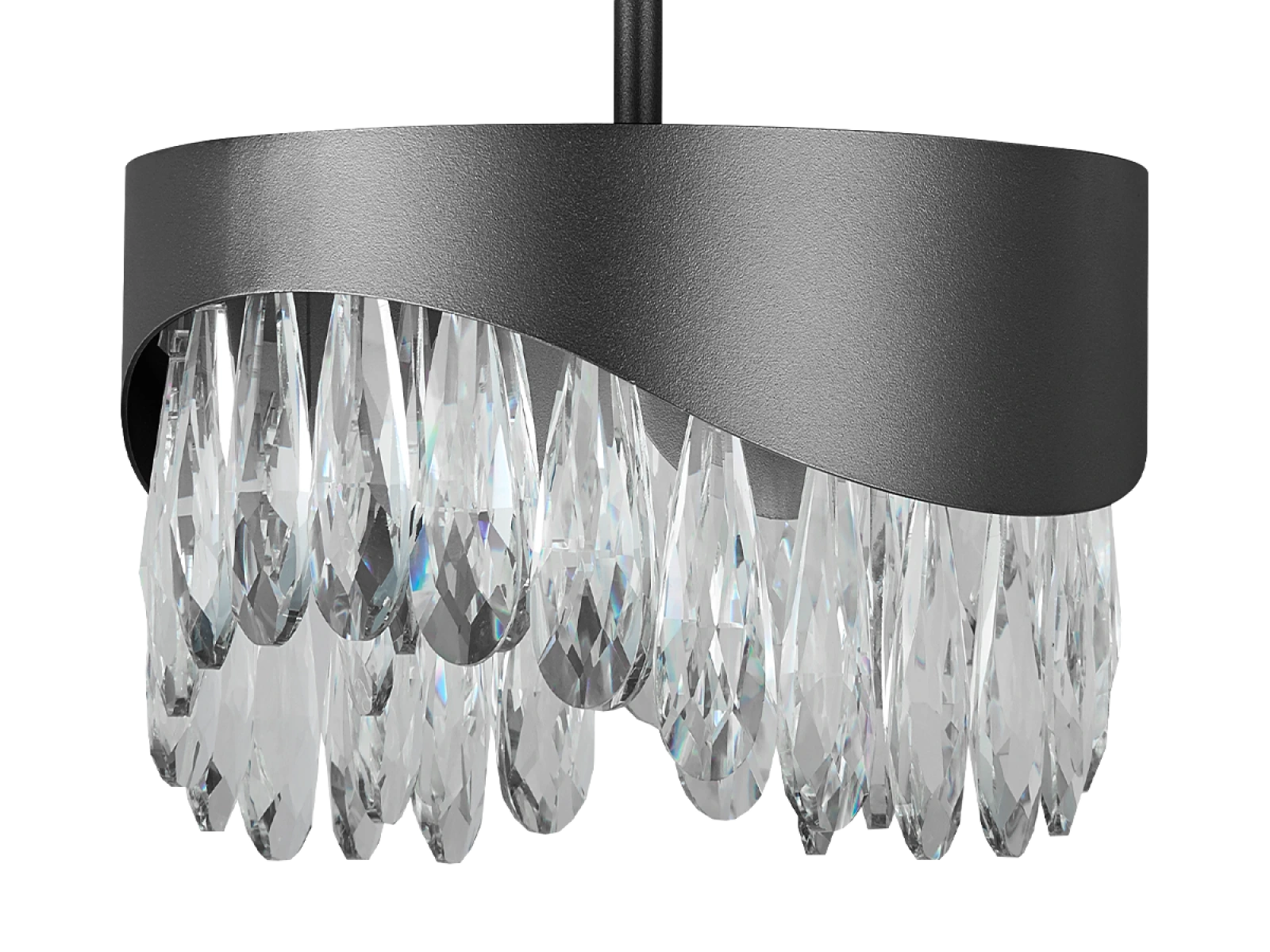 Die Konstruktion der Leuchte besteht aus hochwertigem , rostfreiem Metall mit einem erstklassigen Finish, das durch detailliert geschliffene Kristalle ergänzt wird, die die Lichteffekte betonen. Die verwendete Fertigungstechnologie garantiert die Stabilität des Materials und seine langfristige Ästhetik.