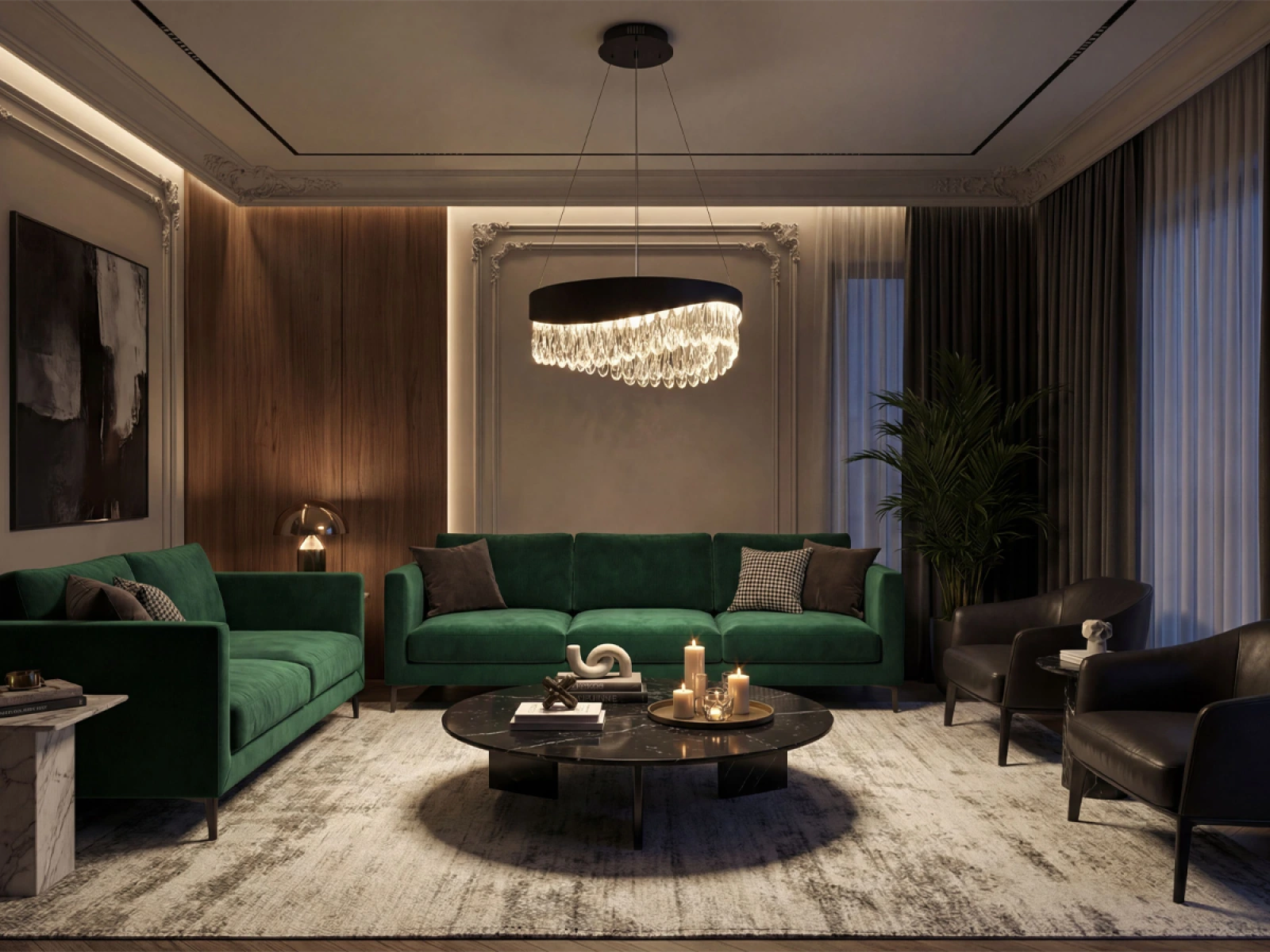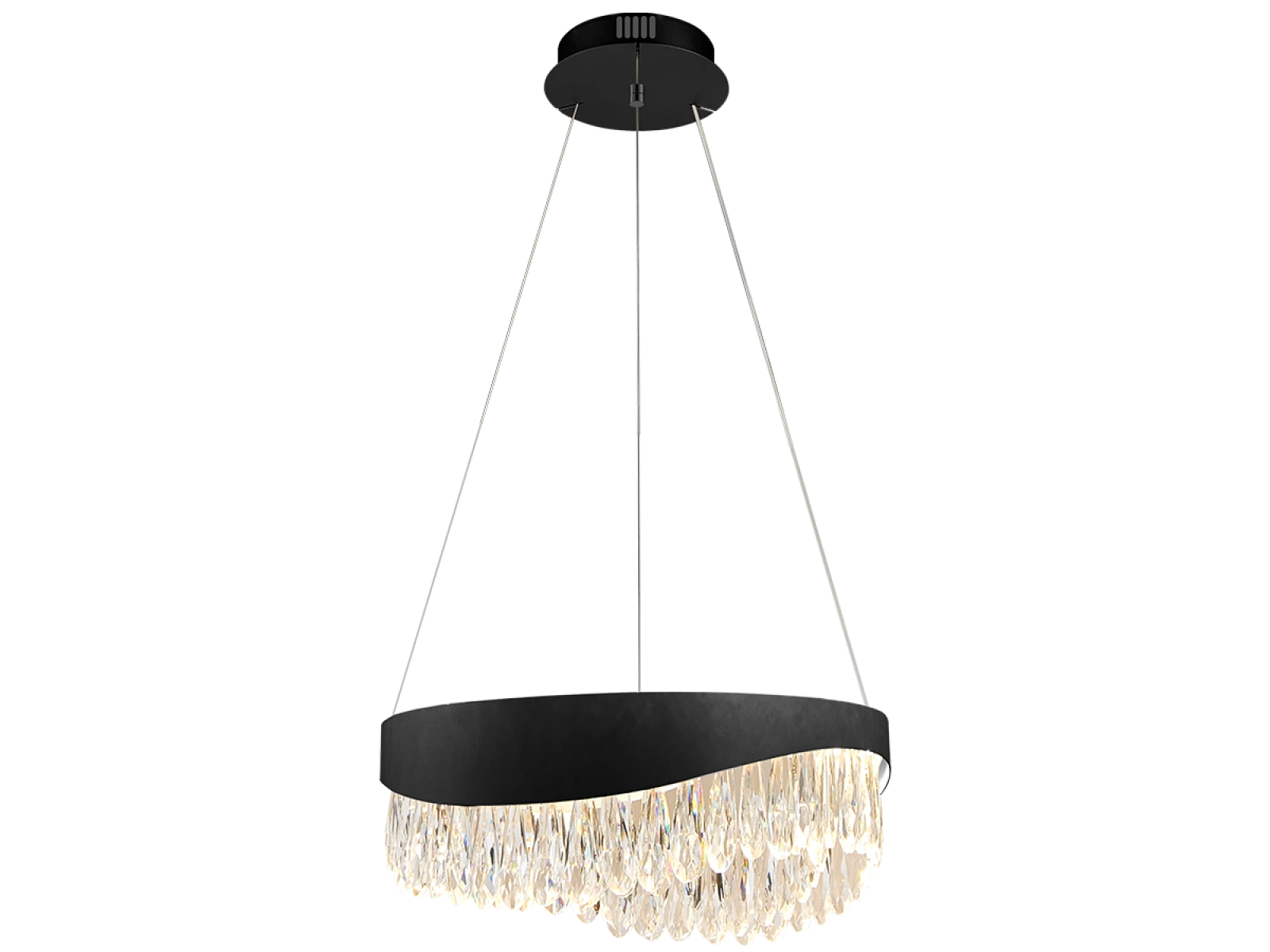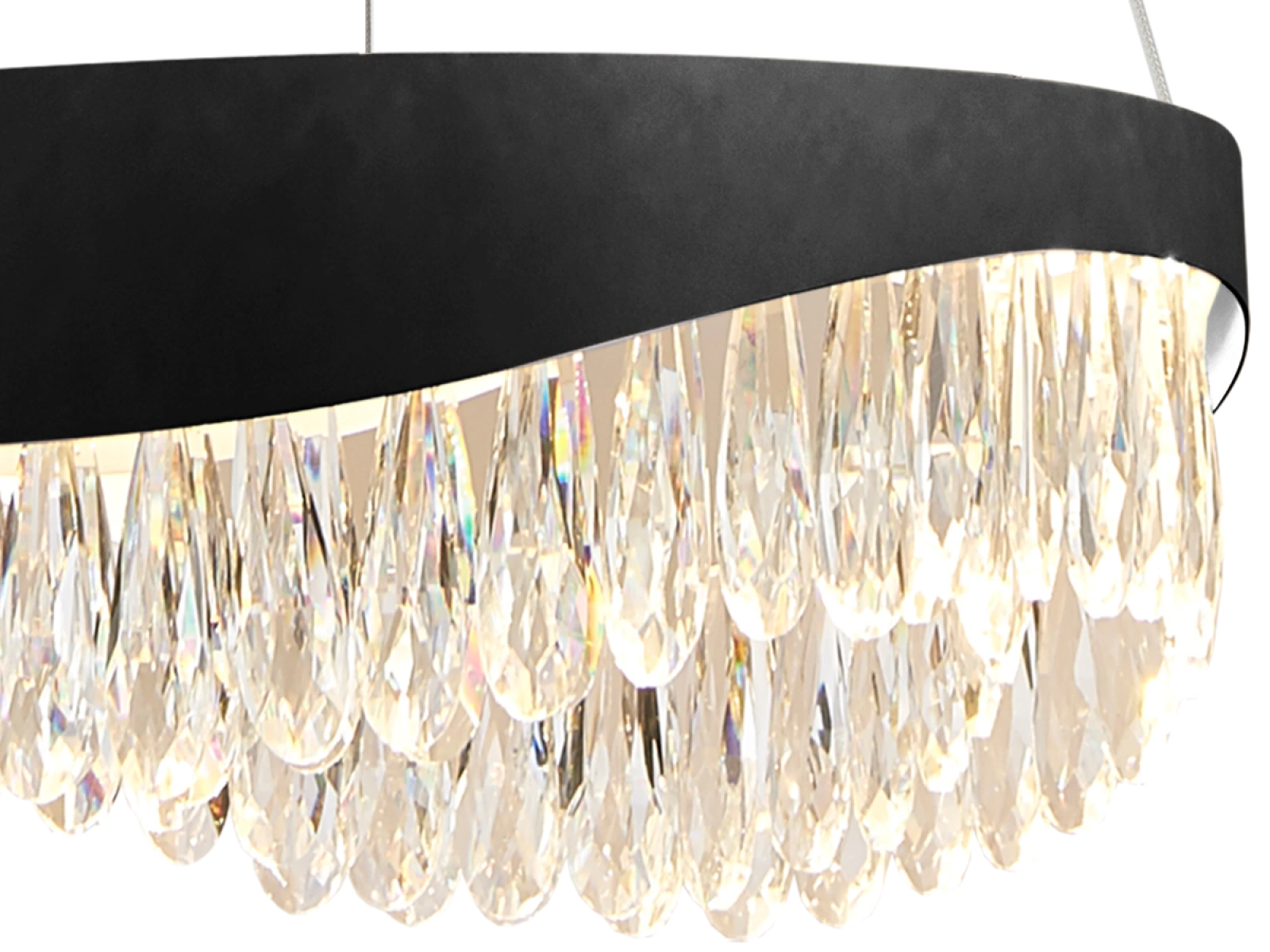Der Sockel der Leuchte besteht aus hochwertig veredeltem Edelstahlmetall, ergänzt durch präzise geschliffene Kristalle, die eine effiziente Lichtreflexion fördern. Dank einer hochwertigen Verarbeitungstechnologie behält das Material sowohl seine Stabilität als auch seine ästhetischen Qualitäten.