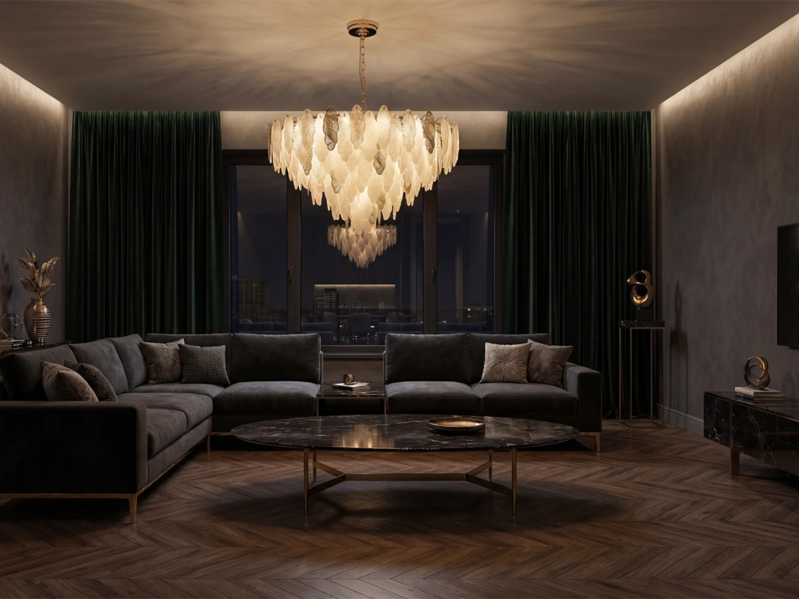Die Pendelleuchte CHOREO von VIZARDI ist eine elegante Designleuchte mit einem ausgeprägten dekorativen Charakter. Die präzise Anordnung der einzelnen Elemente schafft eine harmonische Komposition mit einzigartiger Lichtwirkung und setzt einen markanten optischen Akzent im Raum. Die Leuchte eignet sich für Wohnzimmer, Esszimmer, Schlafzimmer und repräsentative Innenräume.