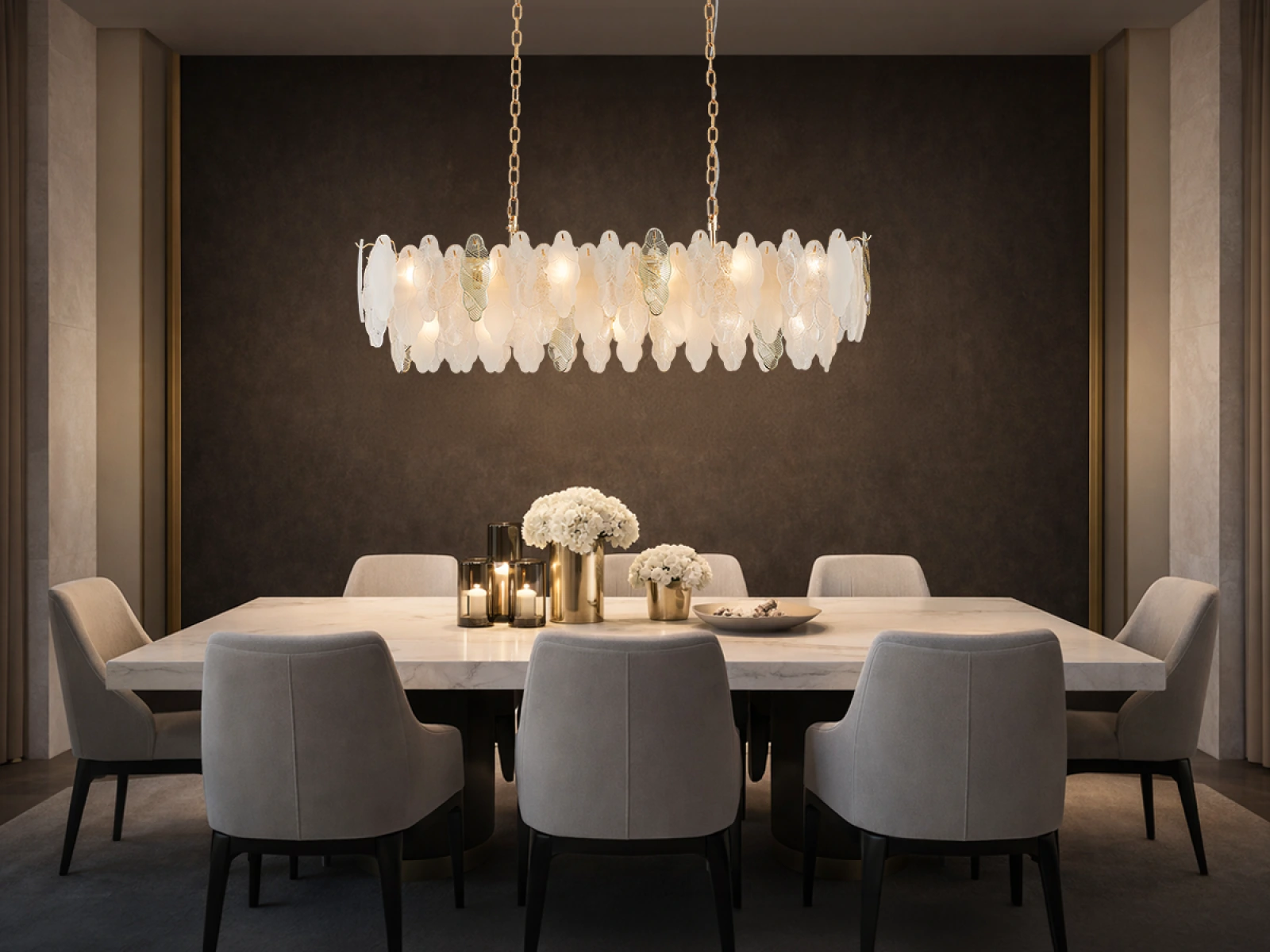 Die Pendelleuchte CHOREO von VIZARDI ist eine elegante Designleuchte mit einem ausgeprägten dekorativen Charakter. Die präzise Anordnung der einzelnen Elemente schafft eine harmonische Komposition mit einzigartiger Lichtwirkung und setzt einen markanten optischen Akzent im Raum. Die Leuchte eignet sich für Wohnzimmer, Esszimmer, Schlafzimmer und repräsentative Innenräume.