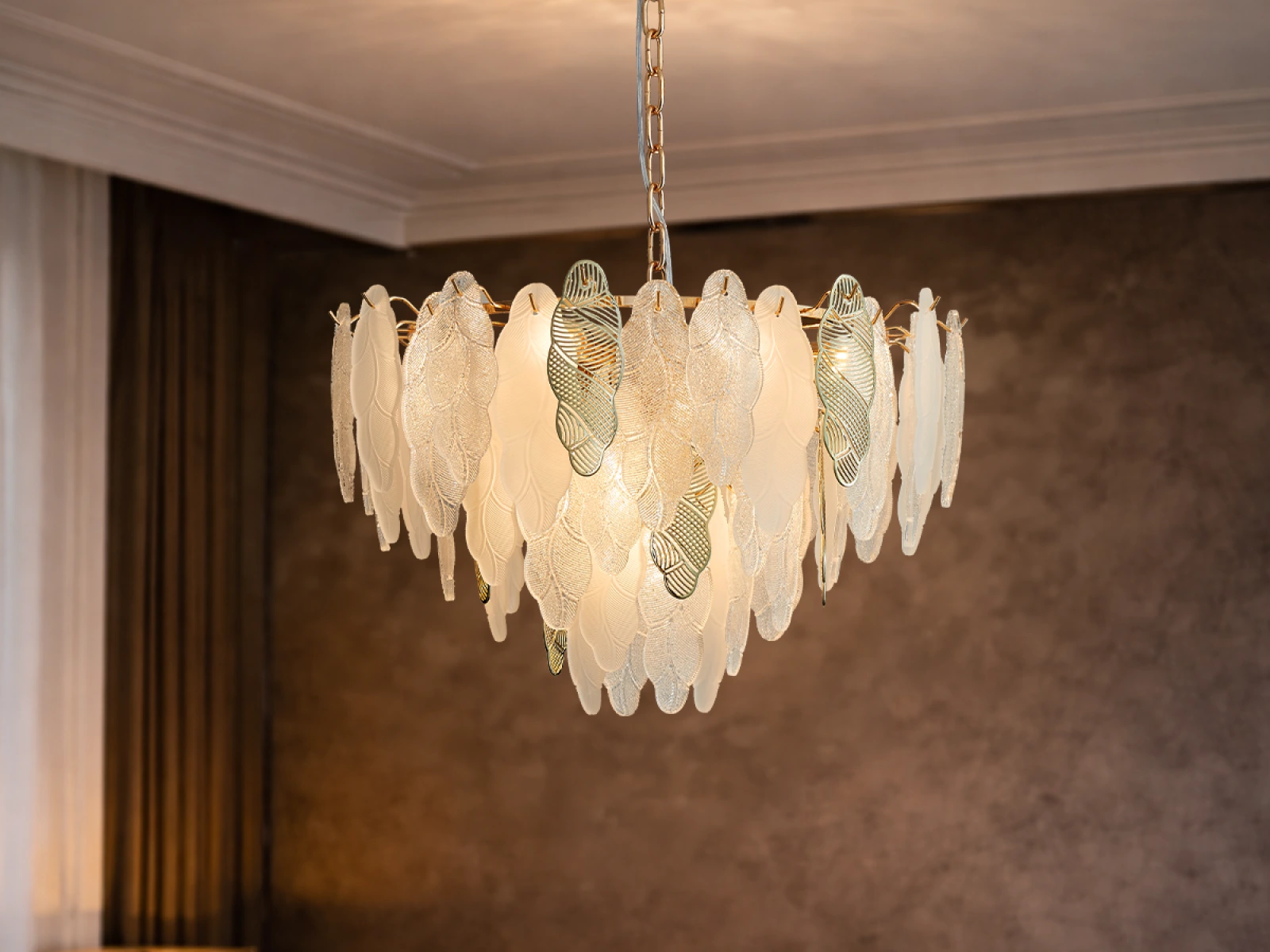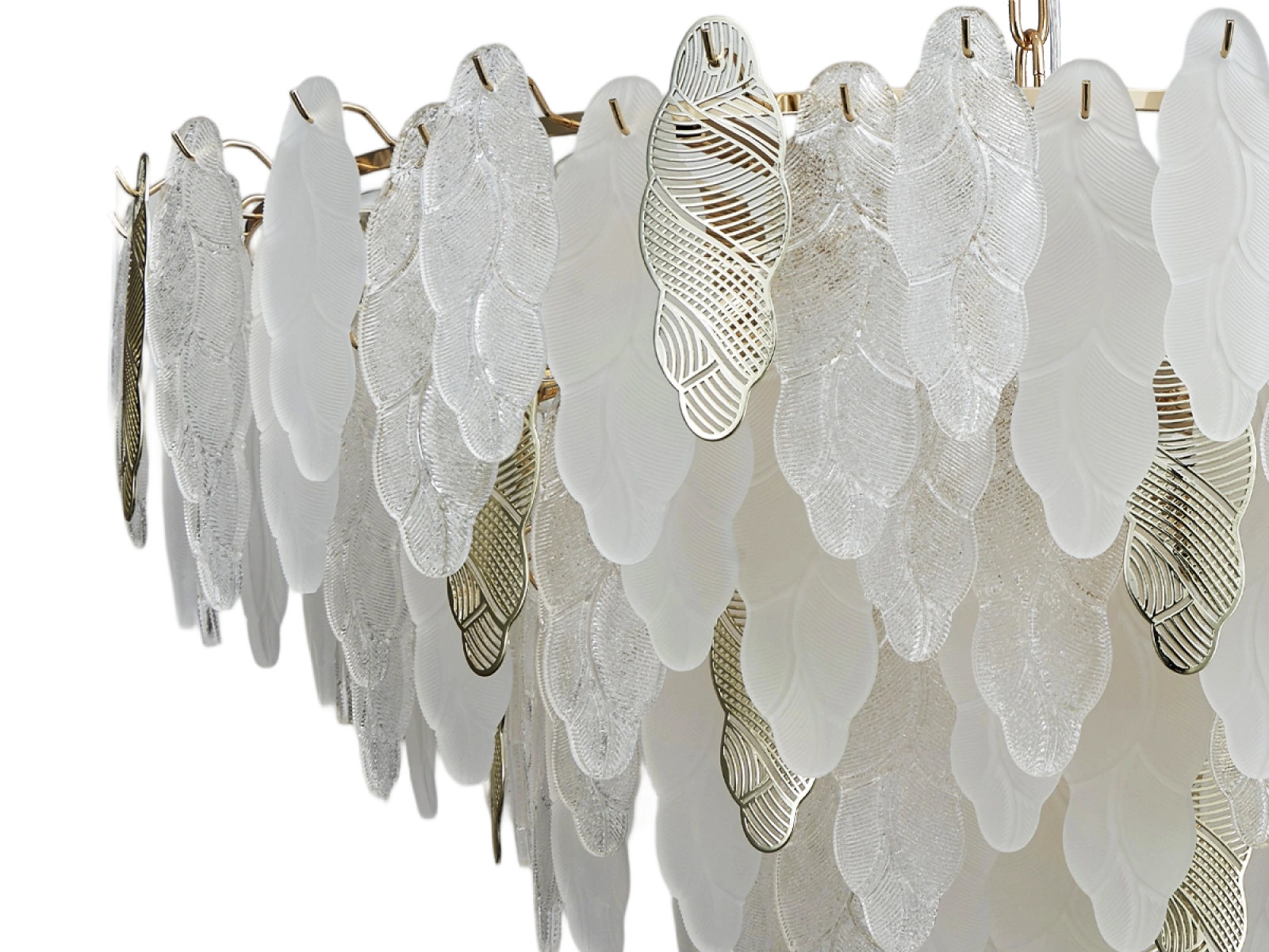 Die feine Struktur der Glaselemente in Kombination mit dekorativen Metalldetails unterstreicht den luxuriösen und anspruchsvollen Charakter dieser Kollektion.