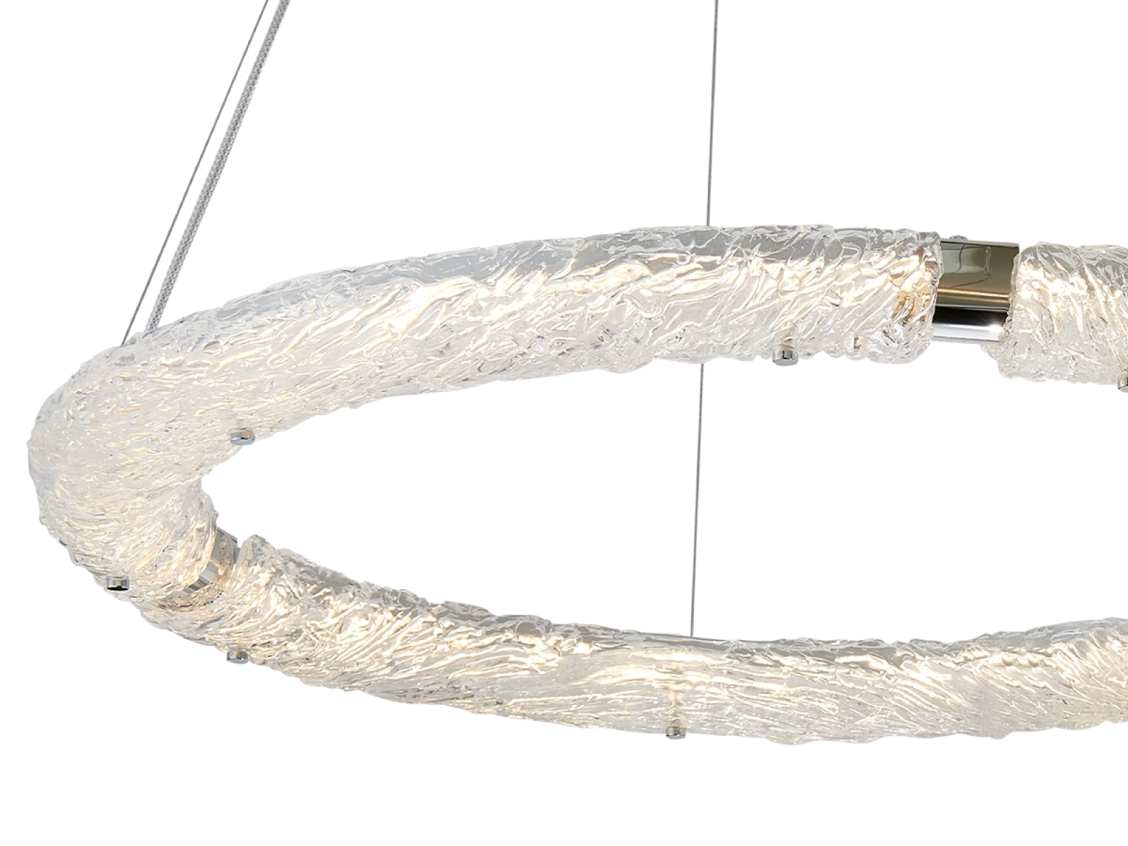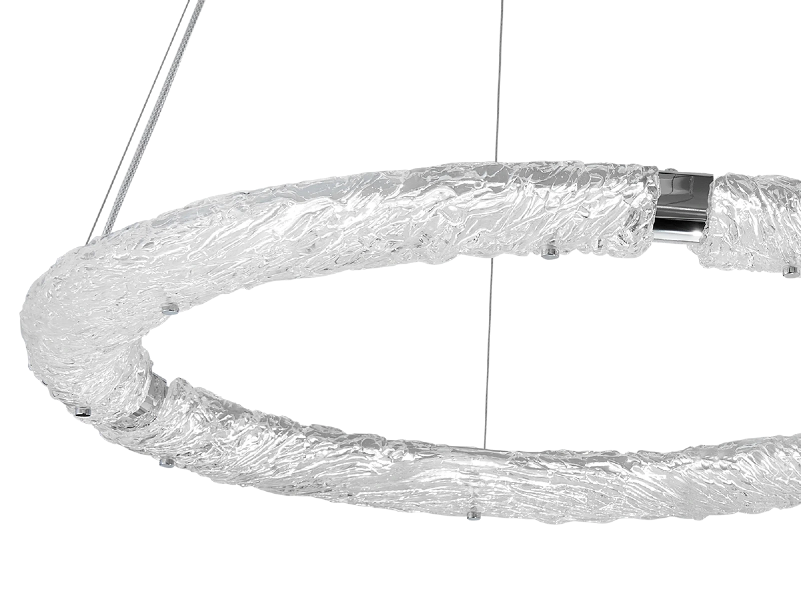 Hochwertiges Material: handgeformtes Glas mit ausgeprägter Textur und Metall mit Chromoberfläche