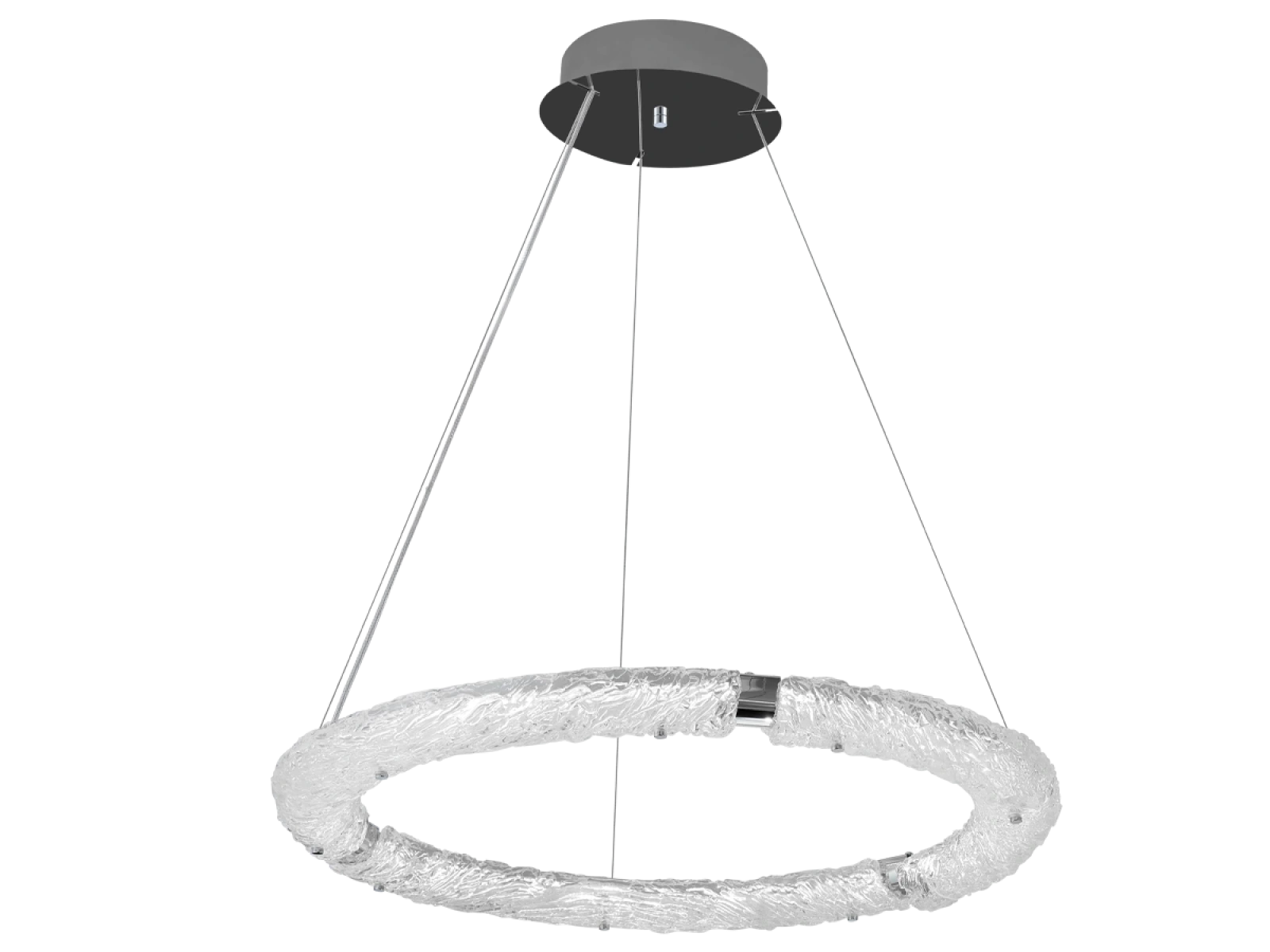 Die Leuchte ist aus hochwertigem, verchromtem Edelstahl gefertigt, was für eine lange Lebensdauer, Stabilität und ein luxuriöses Erscheinungsbild sorgt. Die Glaselemente mit einer strukturierten , rindenähnlichen Oberfläche sorgen für eine gleichmäßige und angenehme Lichtstreuung.