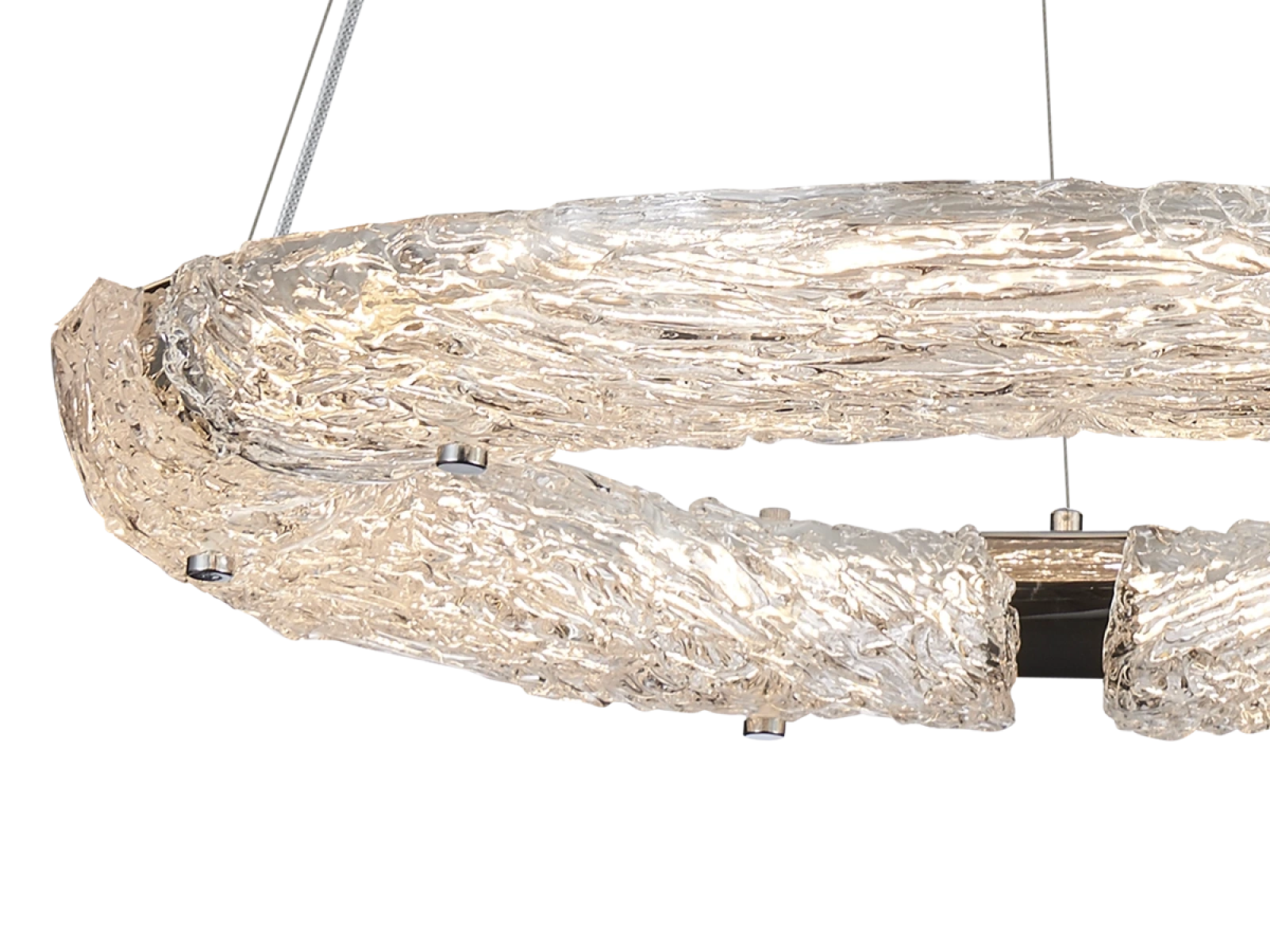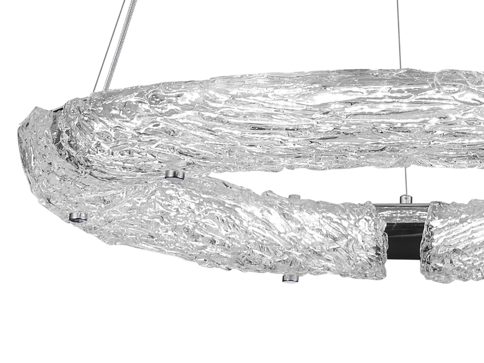 Hochwertiges Material: handgeformtes Glas mit ausgeprägter Textur und Metall mit Chromoberfläche