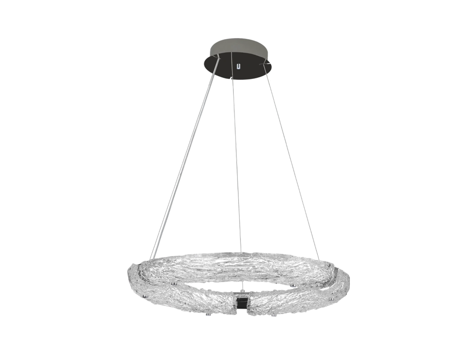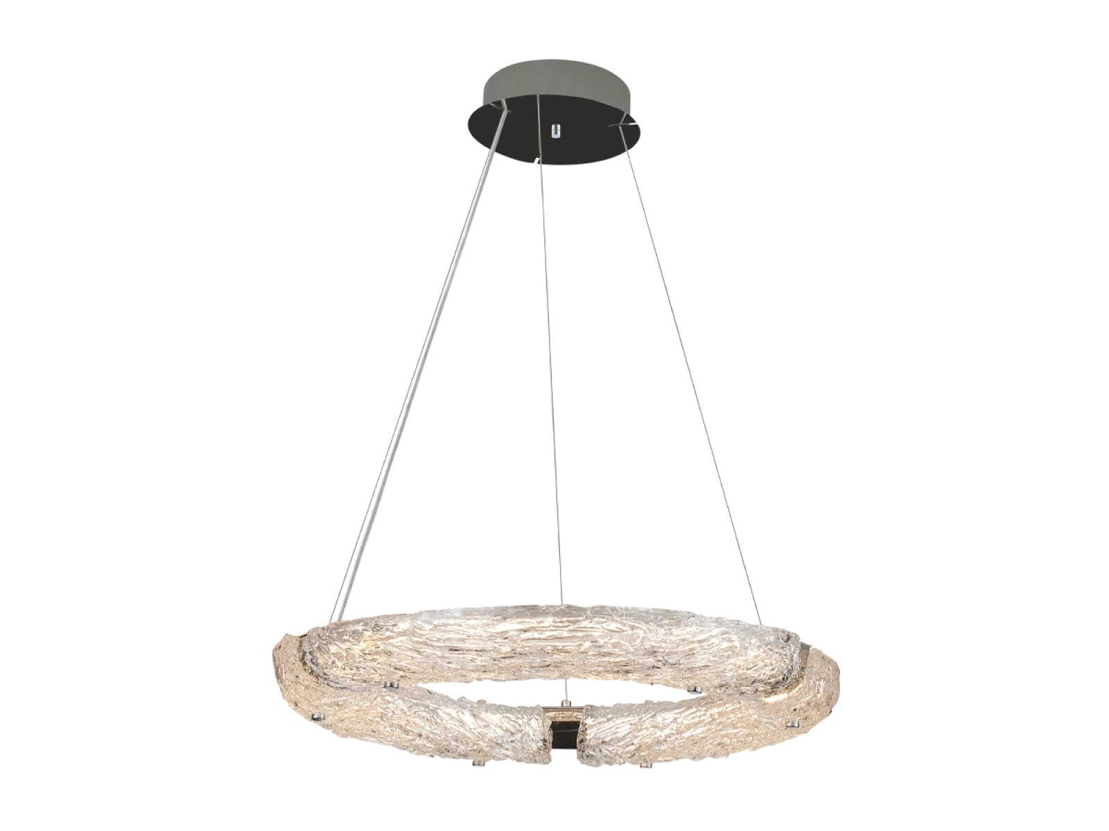 Die Leuchte ist aus hochwertigem, verchromtem Edelstahl gefertigt, was für eine lange Lebensdauer, Stabilität und ein luxuriöses Erscheinungsbild sorgt. Die Glaselemente mit einer strukturierten , rindenähnlichen Oberfläche sorgen für eine gleichmäßige und angenehme Lichtstreuung.