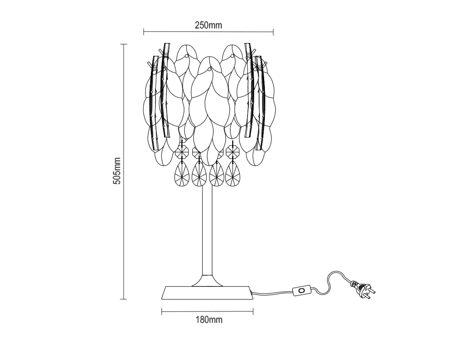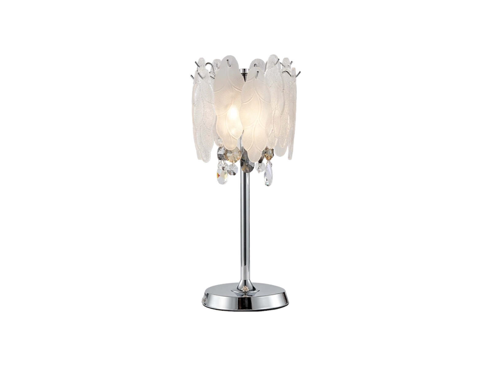 Die Metallstruktur in hochwertiger Ausführung wird durch Elemente aus Glas und geschliffenem Kristall ergänzt, die das Licht sanft streuen und einen subtilen Lichteffekt erzeugen. Die Leuchte wirkt geschmackvoll und zeitlos, mit viel Liebe zum Detail und hochwertiger Verarbeitung.
