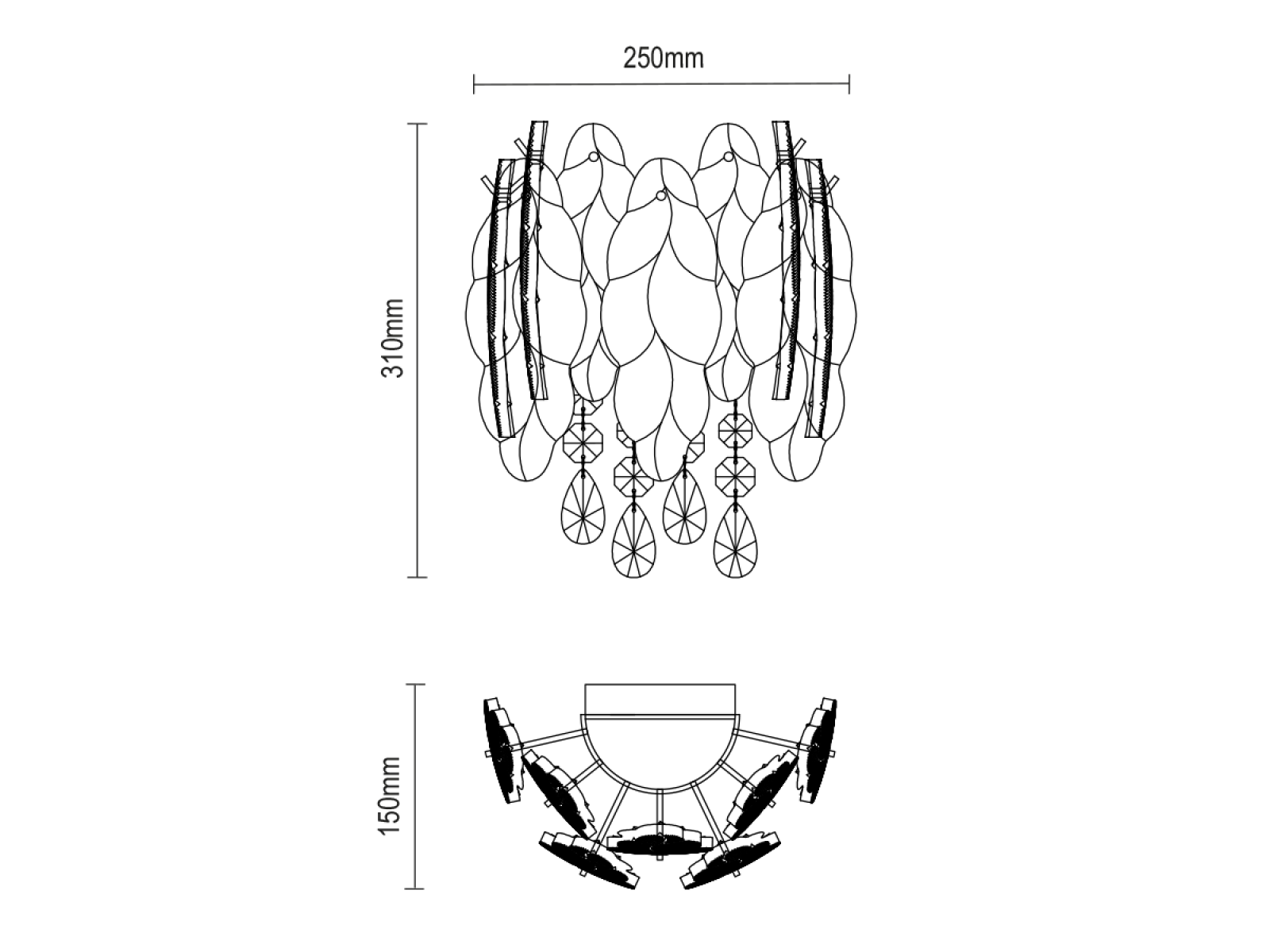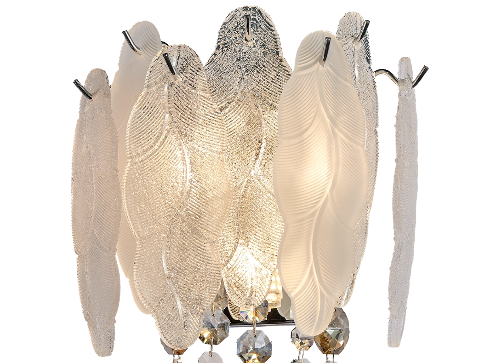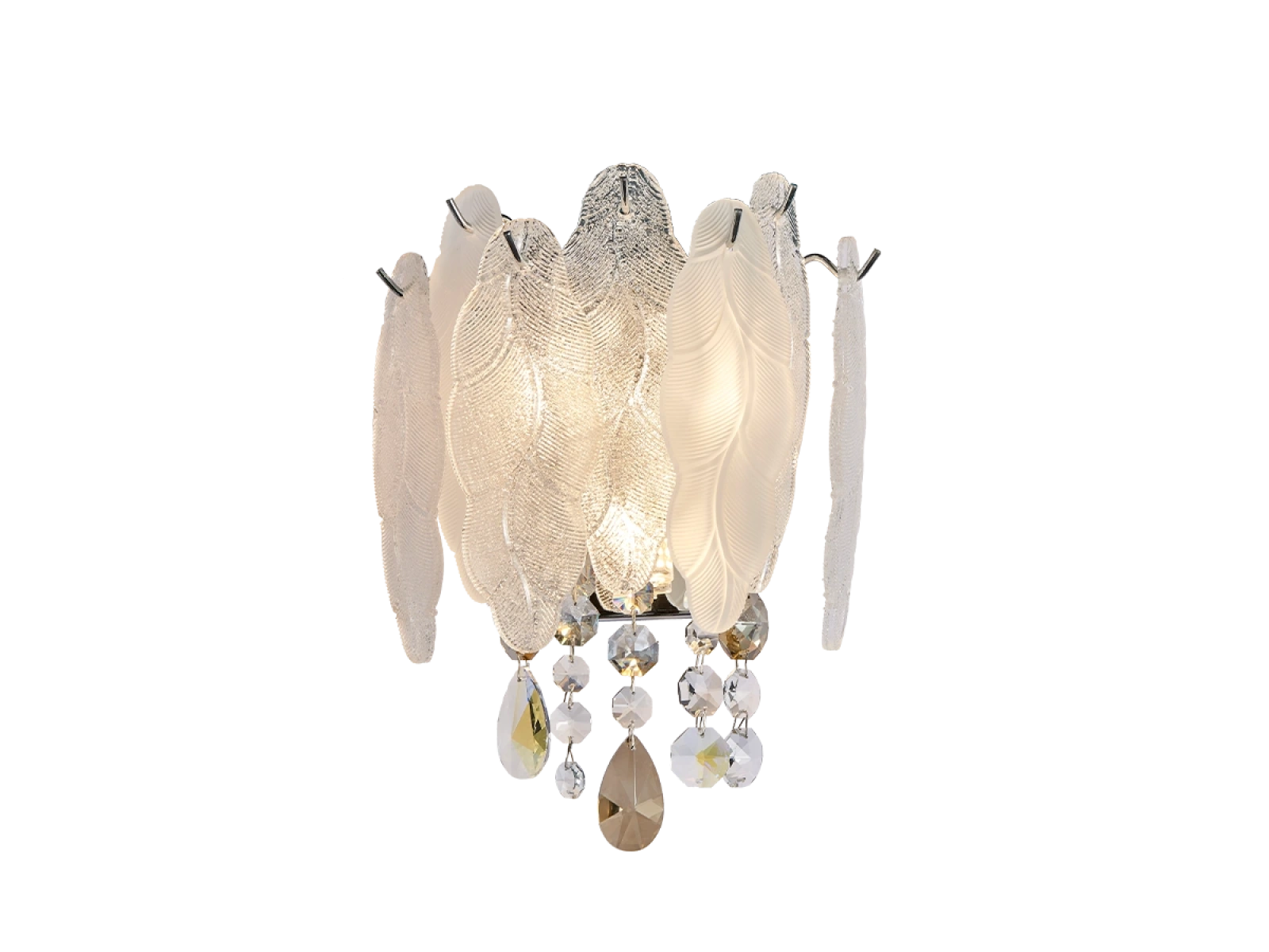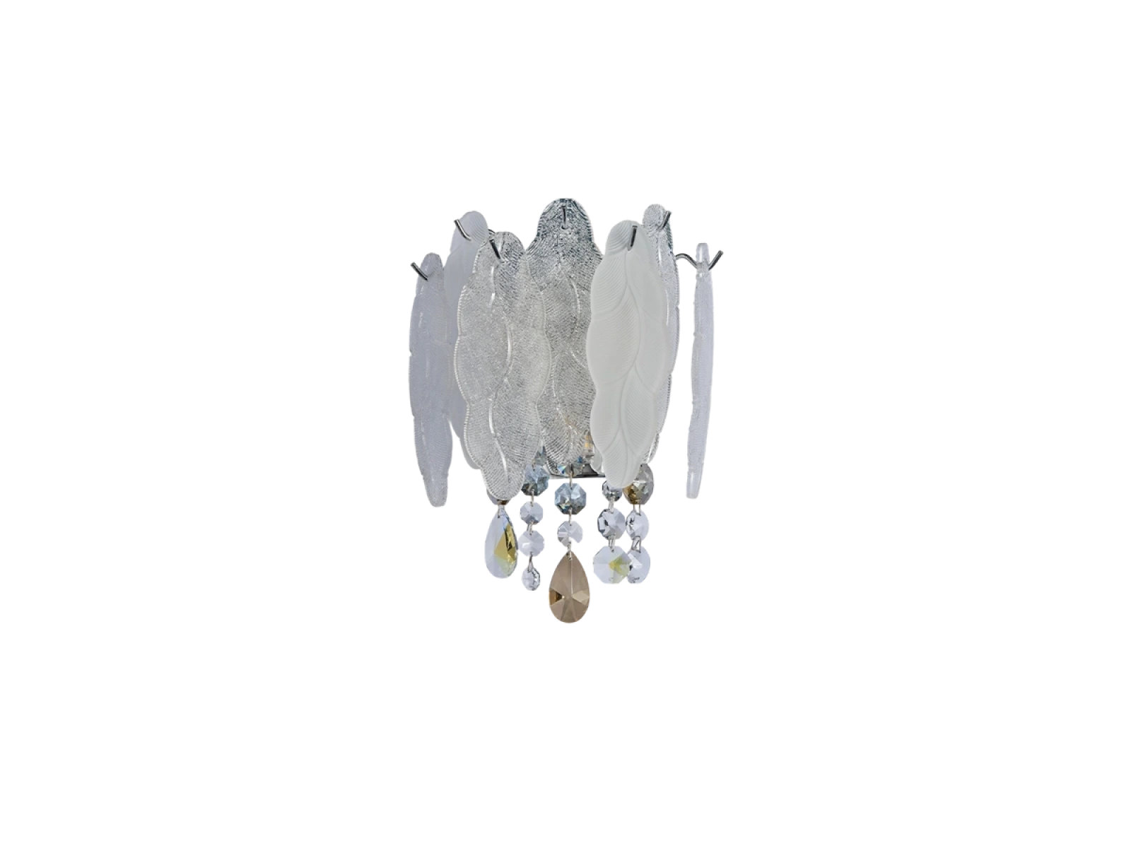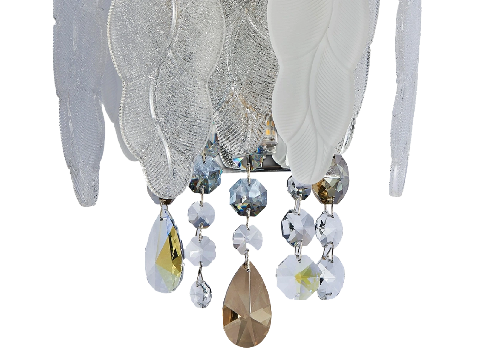 Die Metallstruktur in hochwertiger Ausführung wird durch Elemente aus Glas und geschliffenem Kristall ergänzt, die das Licht sanft streuen und einen subtilen Lichteffekt erzeugen. Die Leuchte wirkt geschmackvoll und zeitlos, mit viel Liebe zum Detail und hochwertiger Verarbeitung.