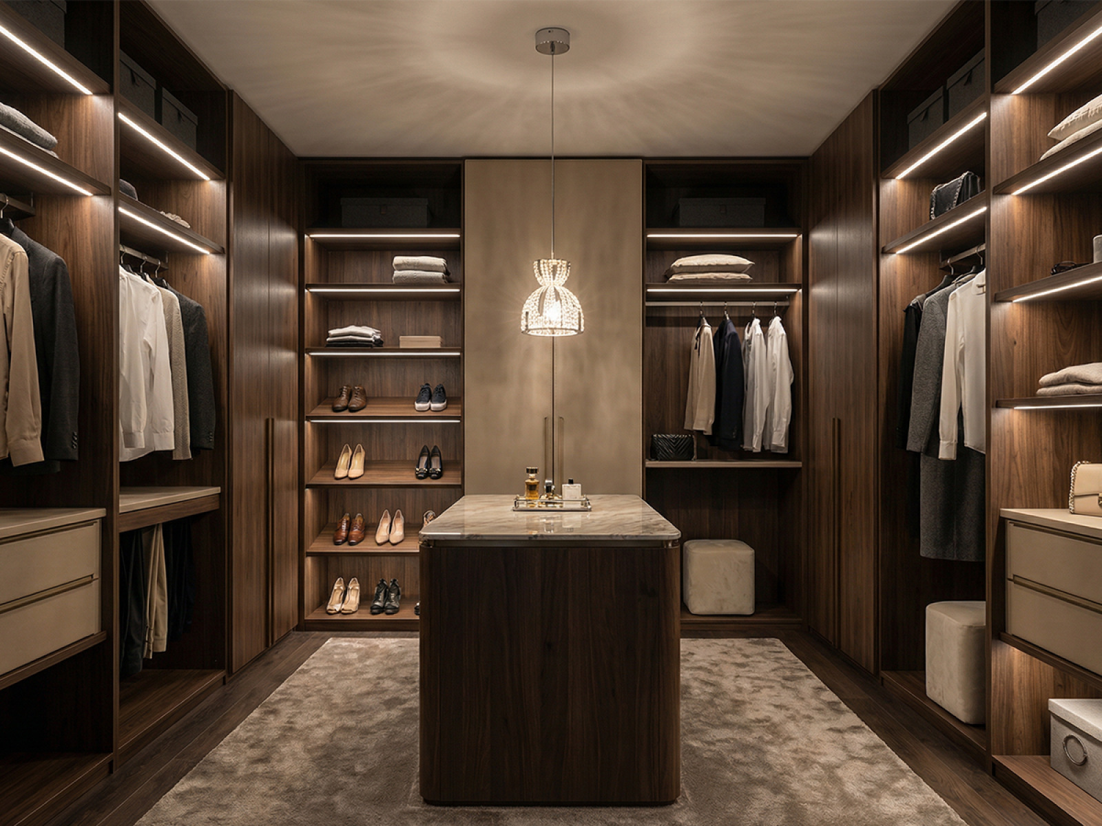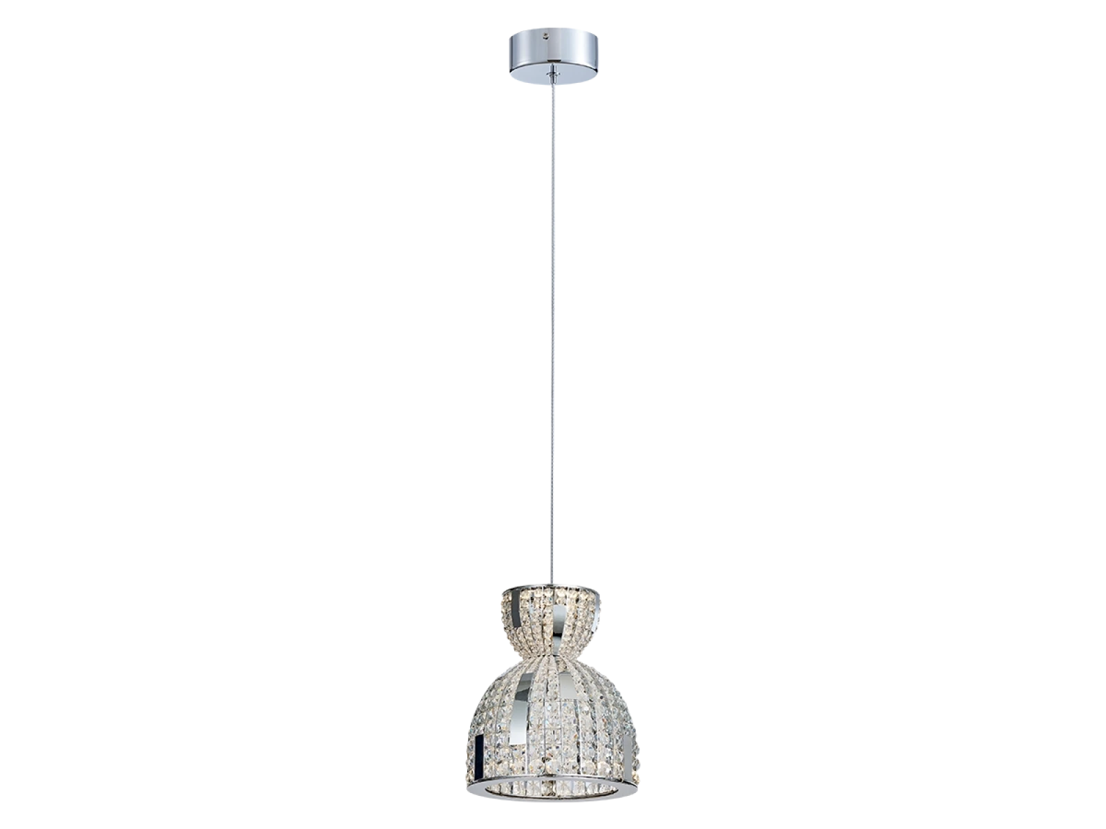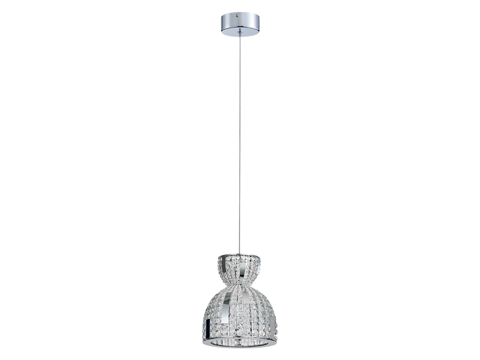 Die Konstruktion besteht aus Edelstahl und wird durch geschliffene Kristalle ergänzt, die für eine intensive Lichtbrechung und -reflexion sorgen. Dank der hochwertigen Verarbeitung behält die Leuchte ihr ästhetisches Erscheinungsbild und ihre Stabilität auch bei langfristiger Nutzung.