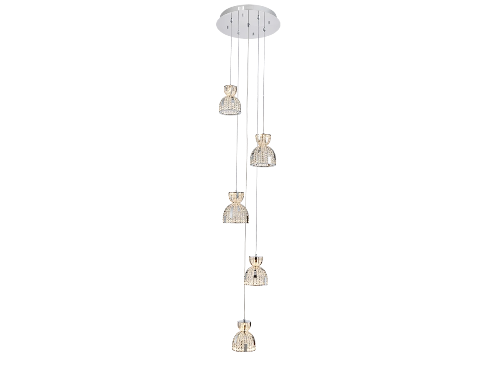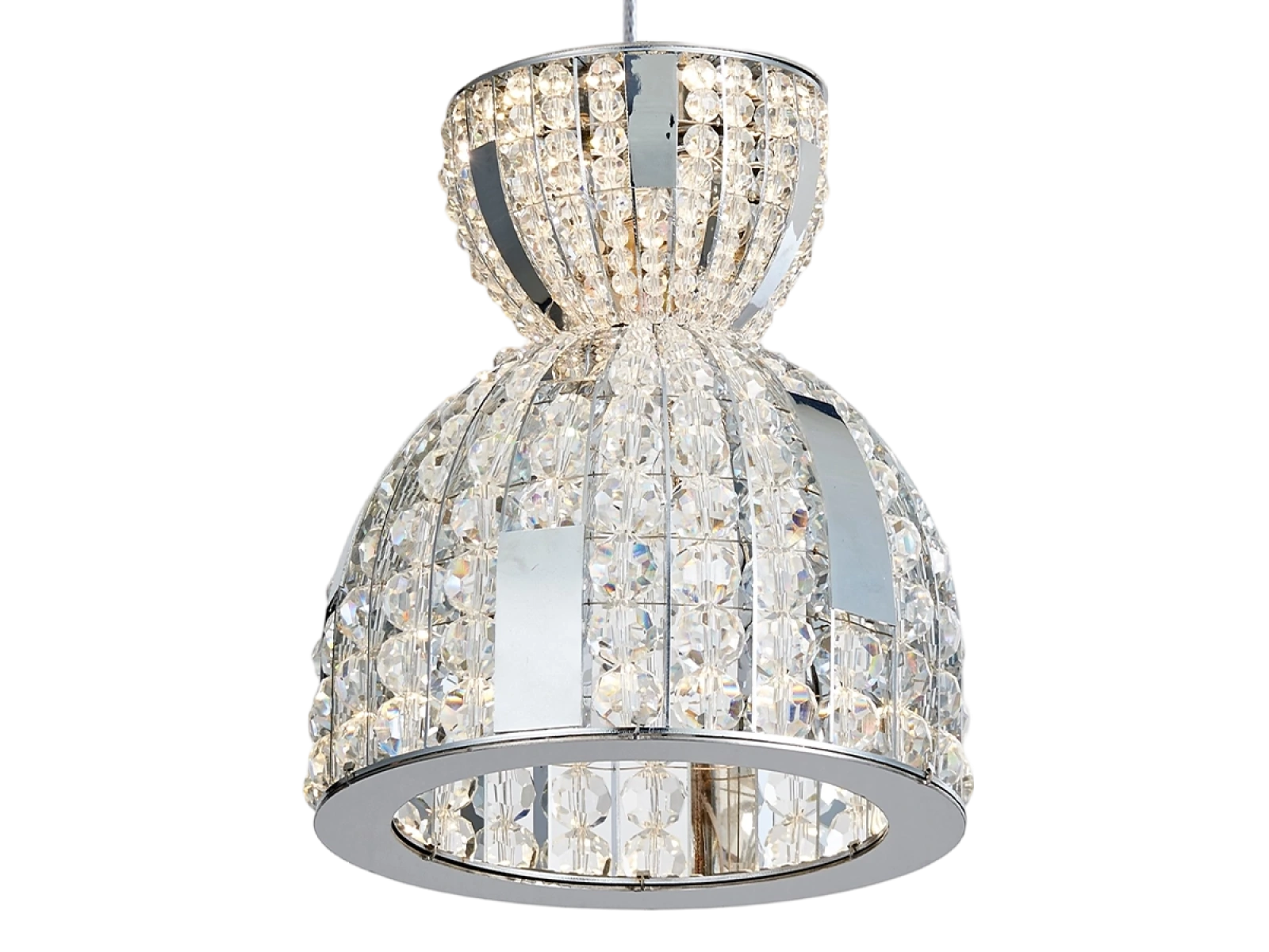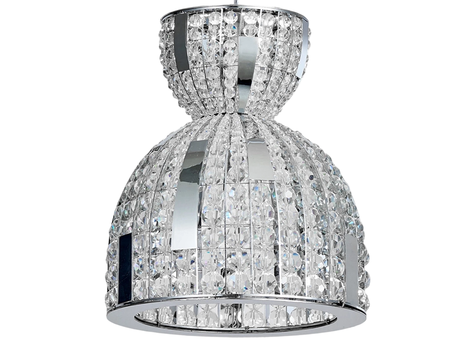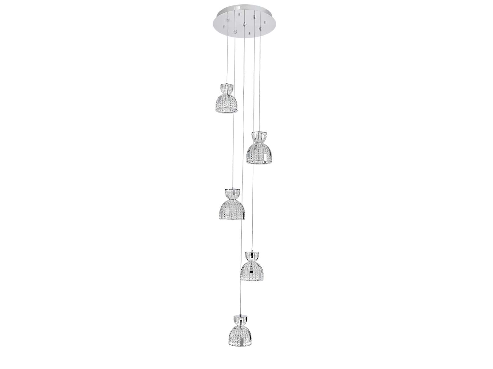 Die Konstruktion besteht aus Edelstahl und wird durch geschliffene Kristalle ergänzt , die für eine intensive Lichtbrechung und -reflexion sorgen. Dank der hochwertigen Verarbeitung behält die Leuchte ihr ästhetisches Erscheinungsbild und ihre Stabilität auch bei langfristiger Nutzung.
