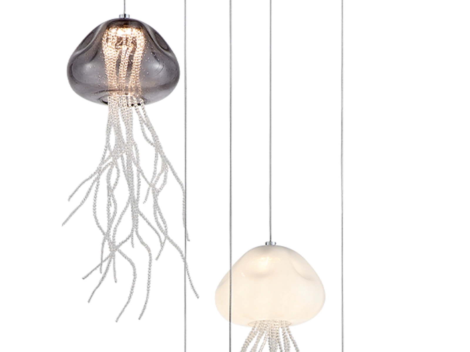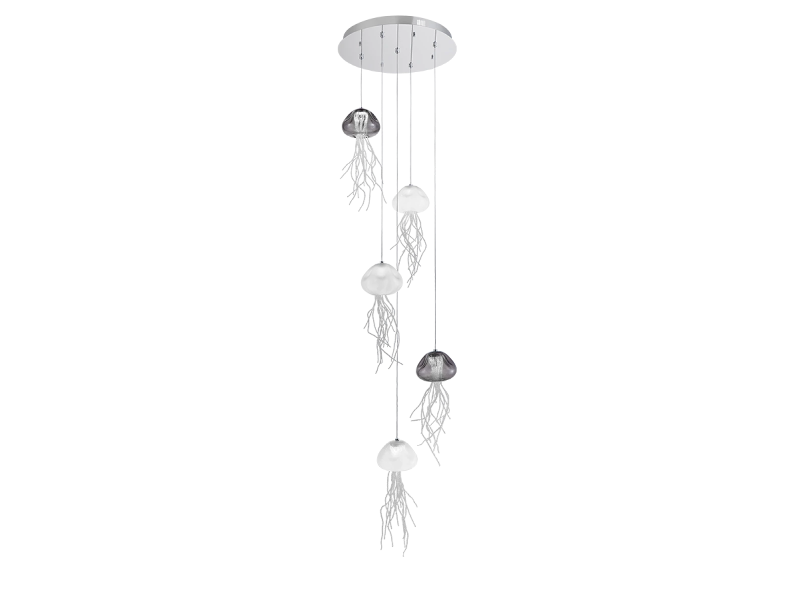 Die Konstruktion besteht aus hochwertigem Stahl und wird durch Glas- und Kristallelemente ergänzt, die für eine sanfte Brechung und spektakuläre Reflexion des Lichts sorgen. Dank der präzisen Verarbeitung behält die Leuchte ihr luxuriöses Aussehen, ihre Stabilität und Zuverlässigkeit auch bei langfristiger Nutzung.